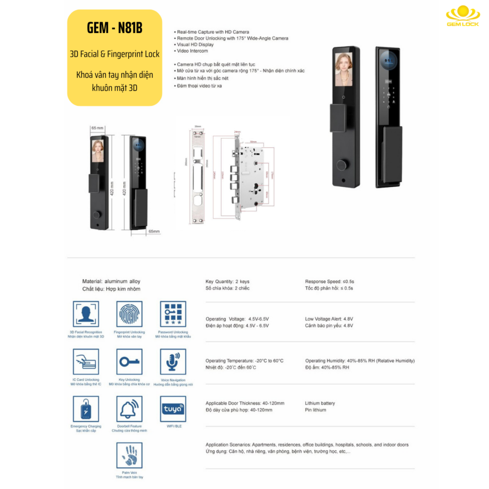 Dành cho những người mạnh mẽ và quyết đoán, N81B mang đến sự an tâm tuyệt đối nhờ hệ thống bảo mật đa tầng: từ nhận diện khuôn mặt 3D đến tĩnh mạch lòng bàn tay. Một ánh nhìn quyền uy, một cái chạm dứt khoát – mọi cánh cửa đều mở ra để tôn vinh vị thế của bạn.