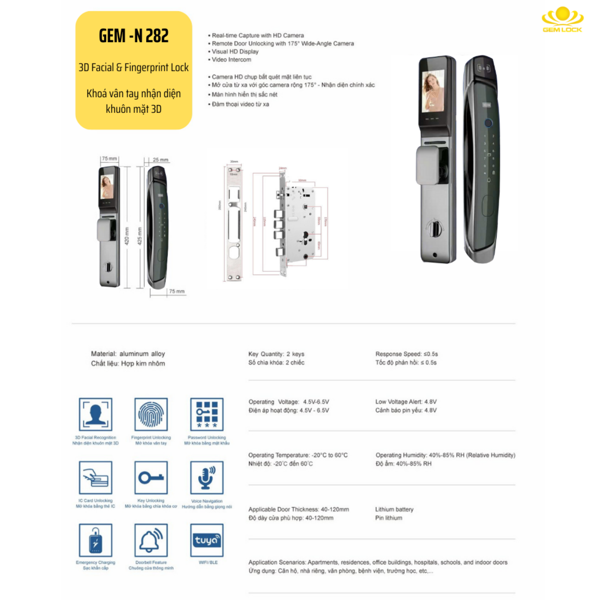 Gem-N282 tập trung vào những tính năng thiết thực nhất, giúp mọi thành viên trong gia đình ra vào nhà một cách thư thái: