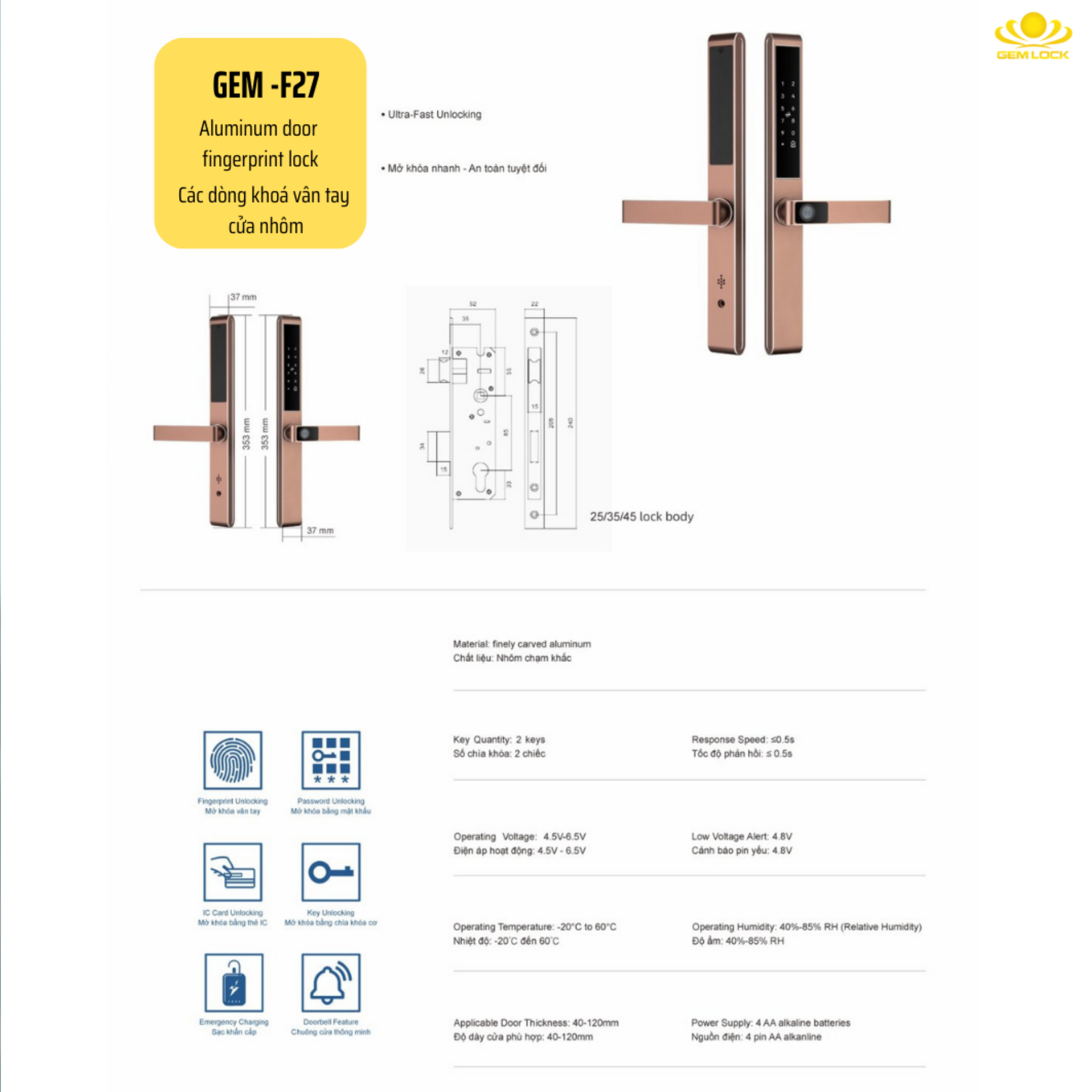 Gem-F27 mang lại sự linh hoạt tối đa, giúp bạn loại bỏ hoàn toàn sự rắc rối của chìa khóa cơ truyền thống: