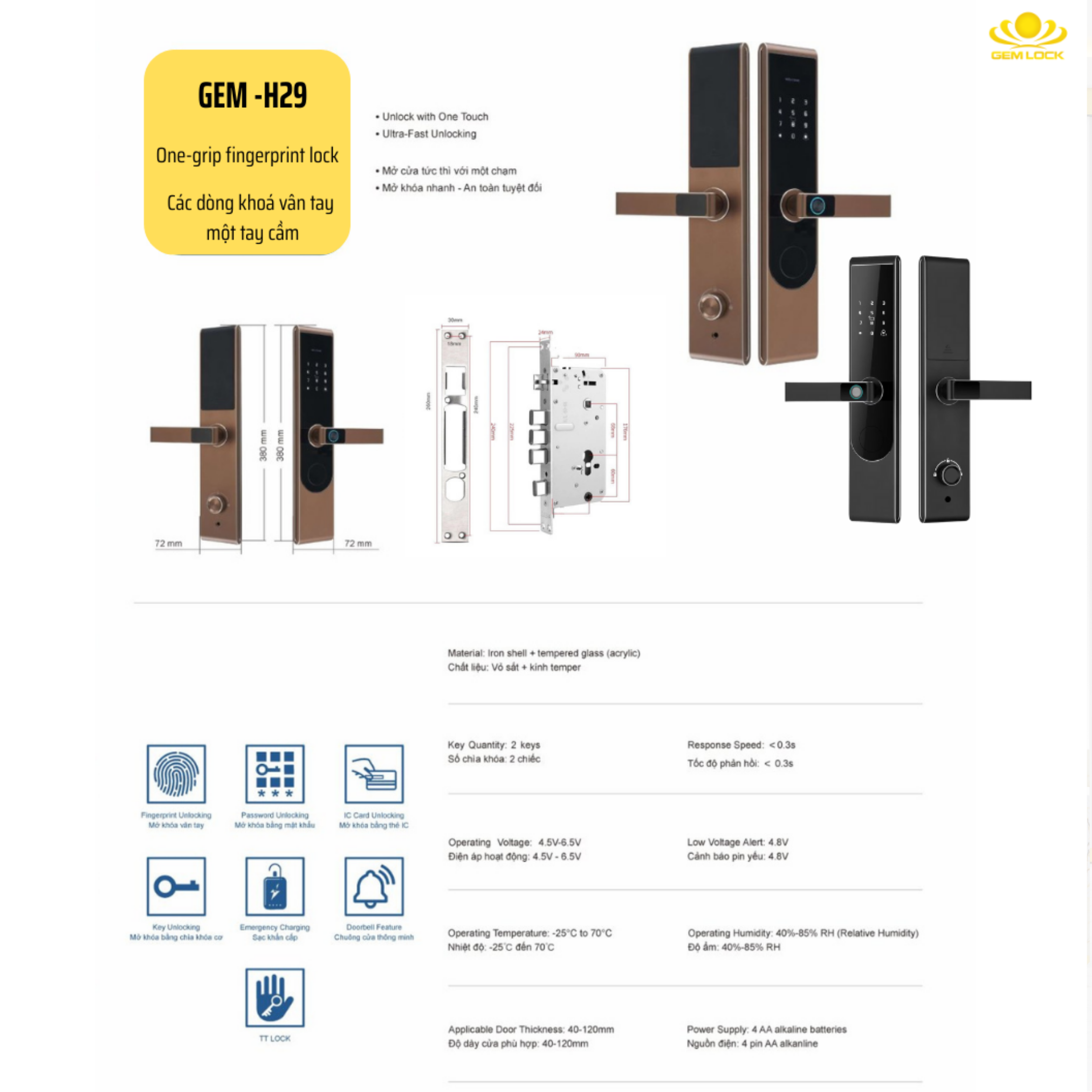 Dù là dòng khóa tay cầm cơ bản, Gem-H29 vẫn đảm bảo trải nghiệm người dùng mượt mà với đầy đủ các tính năng thông minh: